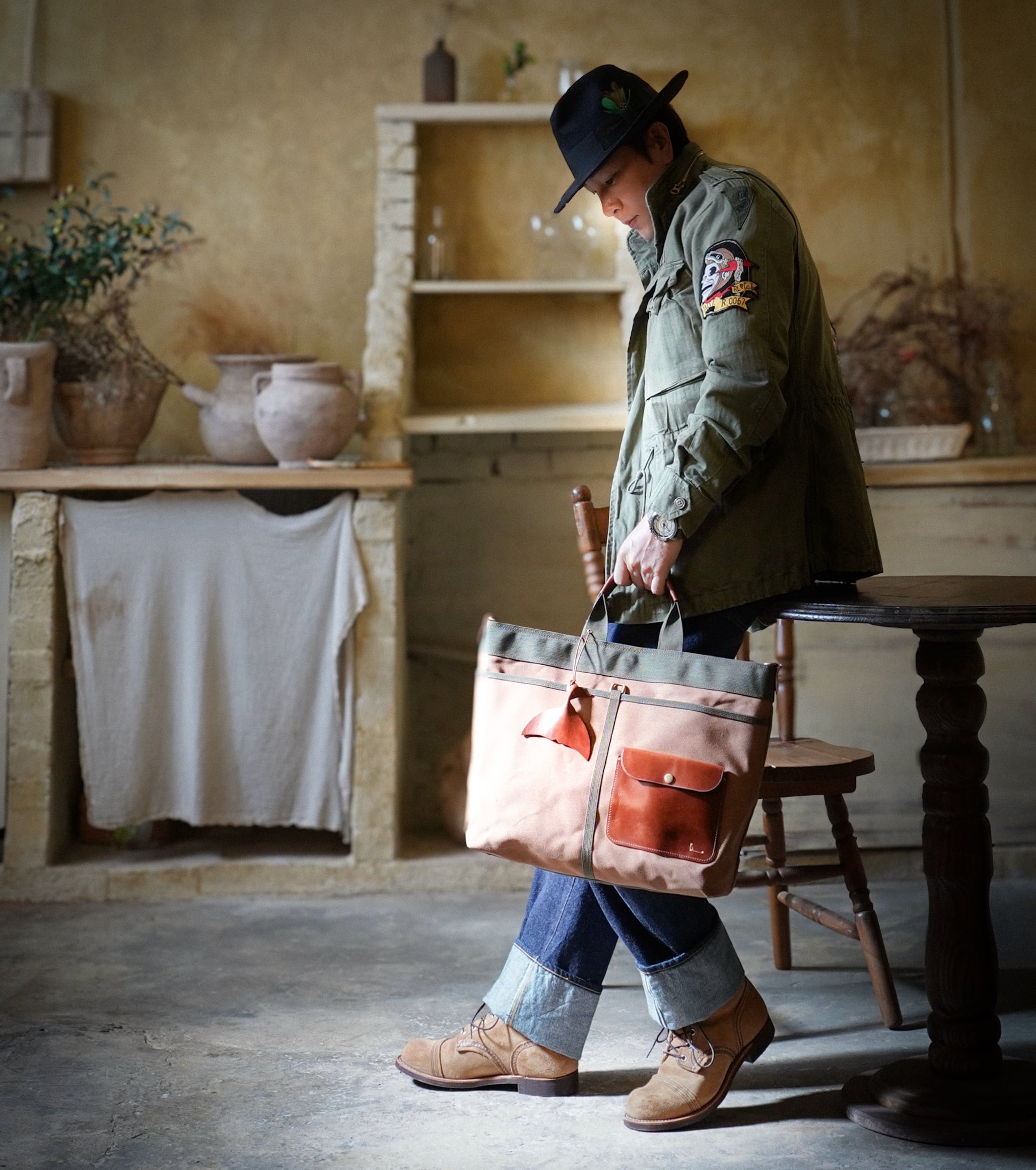 A .多機能&大容量の2WAY仕様のトートバックで、韓国のキャンバスと牛革レザー製でエレガントなデザイン。職人さんの手仕事で丁寧に作られ、高品質な仕上がりが特徴のバッグです!(また一部に、ベラペレ認証済のイタリアンレザーも使用してます)