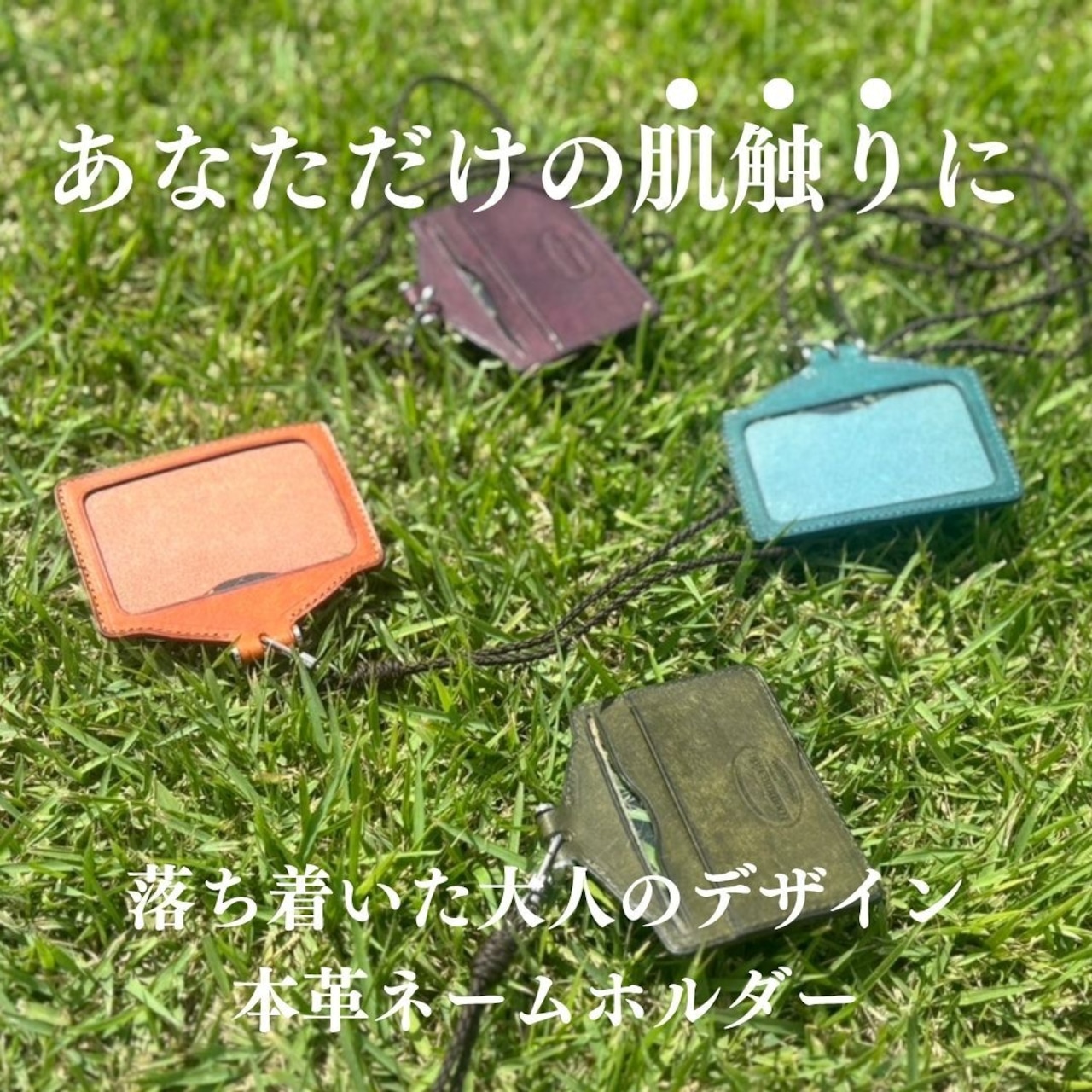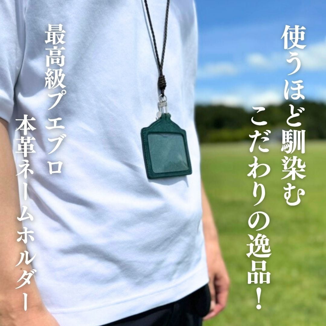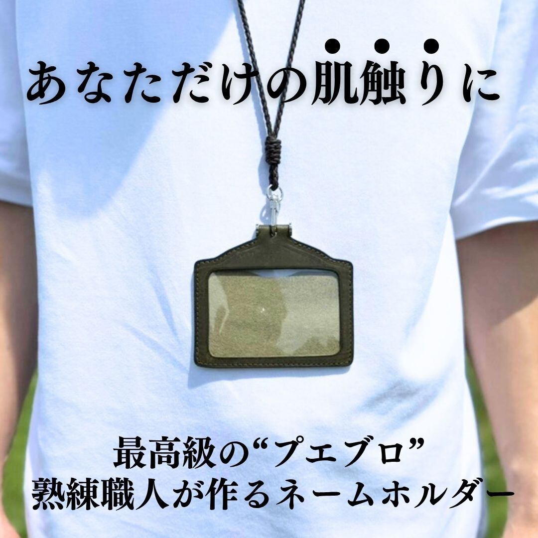A .(合同会社Trust Elements)代表の川野邊がデザインをし、熟年職人と試行錯誤しながら、作られた高級本革のネームホルダーです。遊び心のあるカラーバリエーションで、プエブロレザーを使いエレガントな外観を演出。(首からかけるストラップ付き)