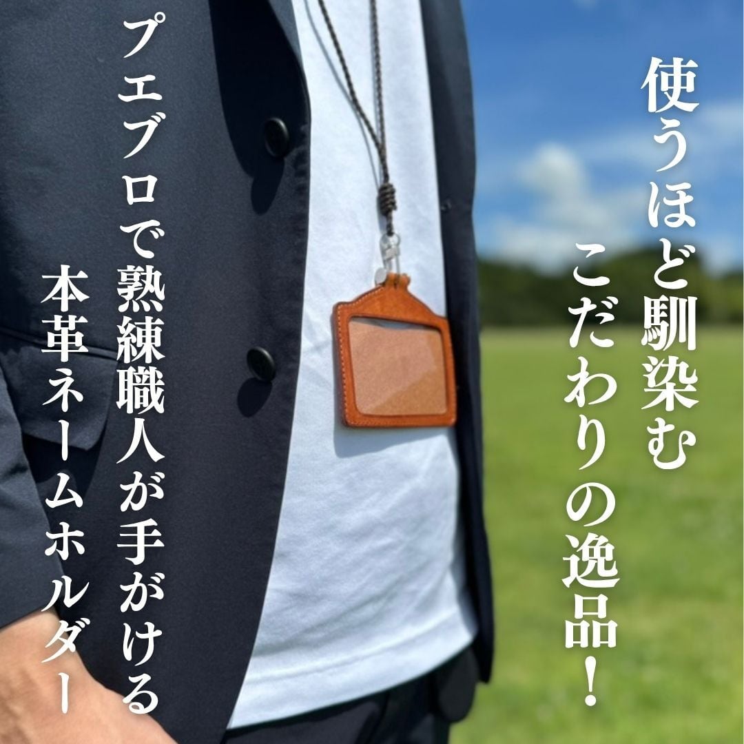 このネームホルダーは、使い込むほどに深まるレザーの魅力を満喫できる仕様で、経年変化を楽しむことができます。大切な名刺やカードをスマートに収納しながら、さりげないオシャレを演出しましょう。ビジネスシーンにふさわしいこのアイテムを、ぜひ手に入れてみてください!
